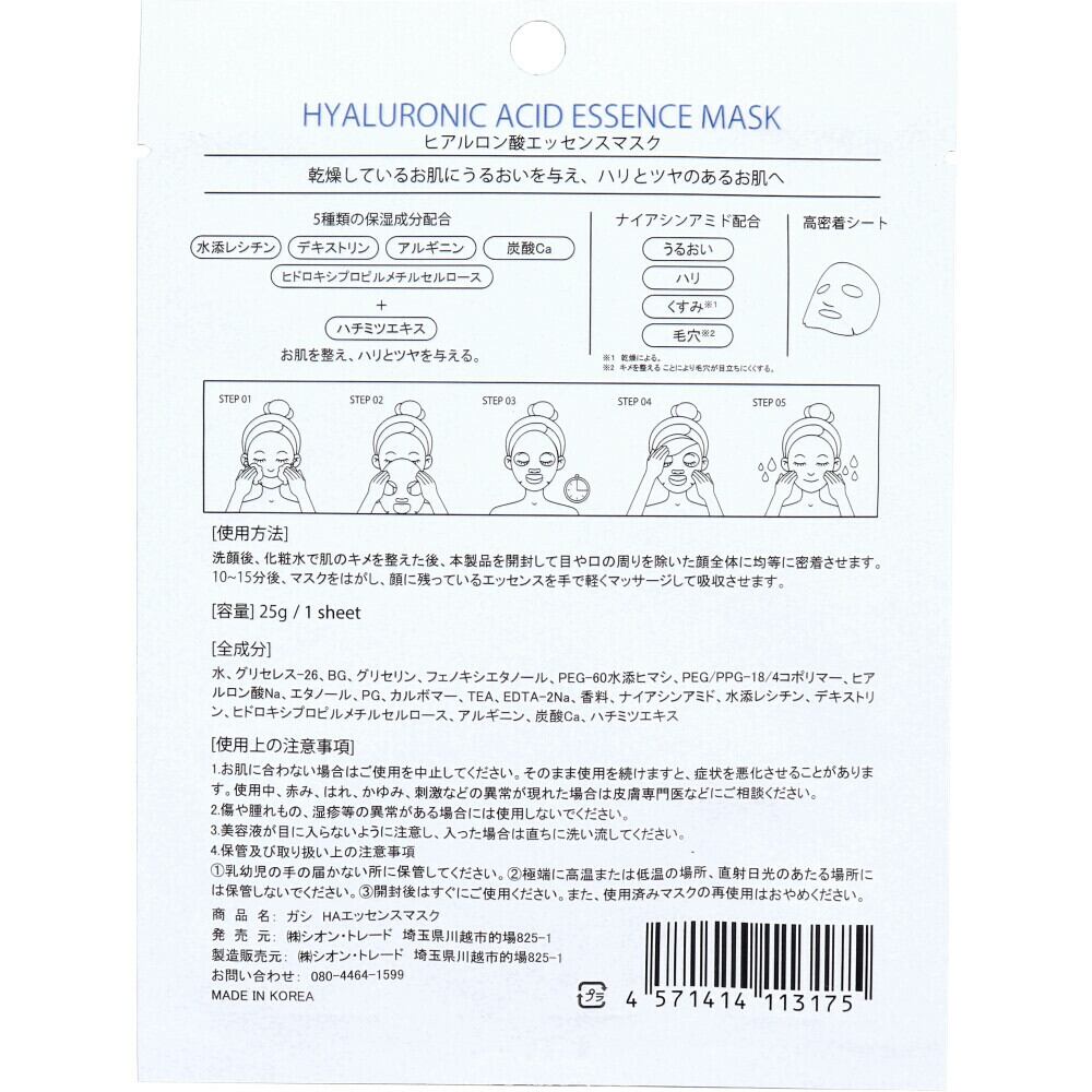 GASI(ガシ) ヒアルロン酸エッセンスマスク 1枚入